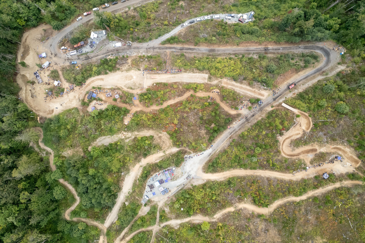 At the top of the course, Alesio Tonoli plays heavy metal softly on his iPhone and packs a berm with Chelsea Kimball. The August sun wins its battle with the fog. Wildfire haze hangs in the foothills, and the North Cascades are barely visible to the east. Soon, all the riders will grab a shovel. Clemens Kaudela will hop into the excavator and help the Shire Built crew tune up that new dirt jump at the end of the line. Woolley Fest is an all-hands-on-deck affair—an international gathering that remains a fully DIY event.