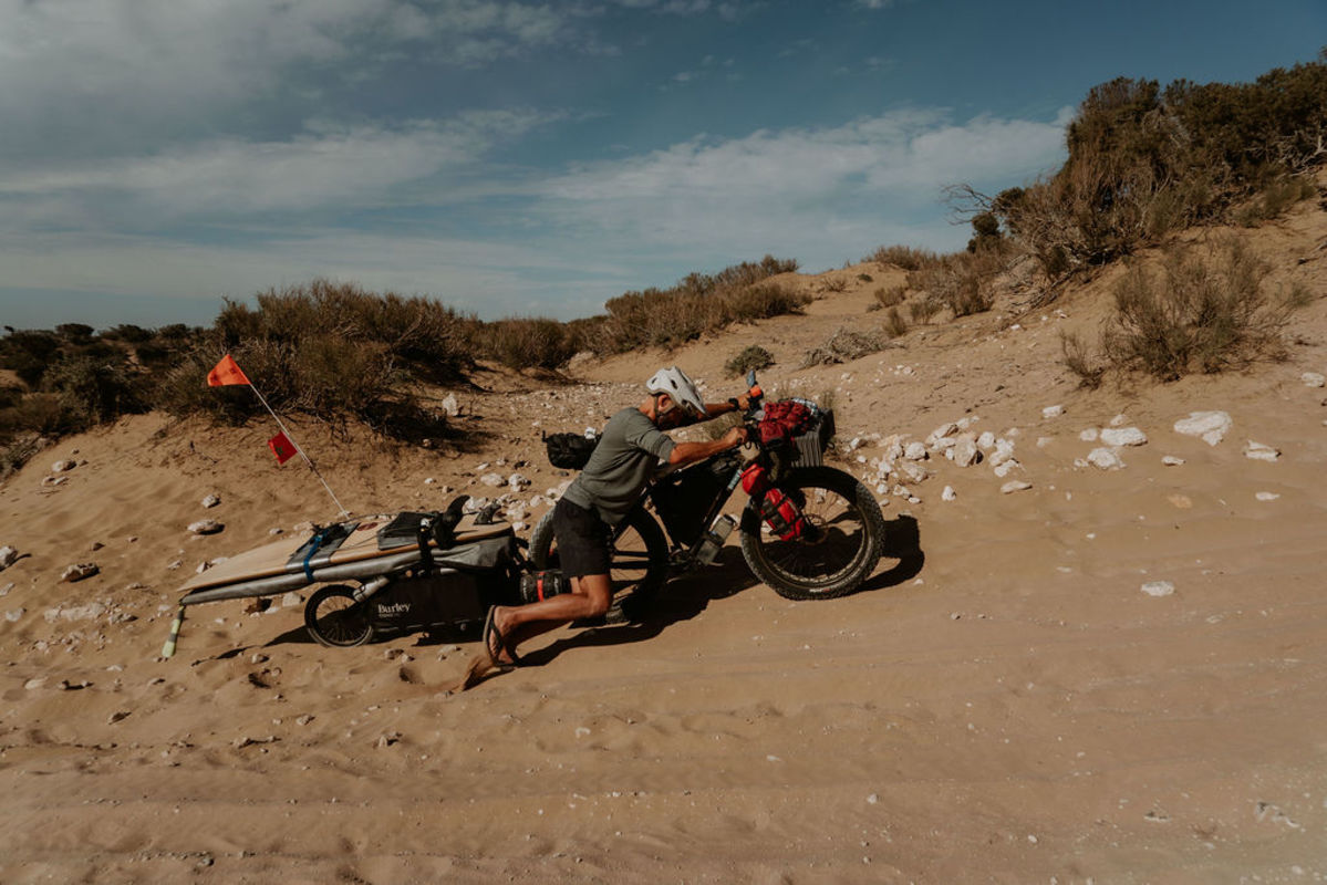 This is a couple well-versed in off-grid exploration. A few years ago, they traveled and surfed (and got engaged) in Antarctica. More recently, the couple returned home to Australia after completing the first segment of an unorthodox odyssey, a 8,000 kilometer-bike ride (some 4,970 miles) from France to Senegal. In two weeks, they’ll return to Africa and push for the end of the content: up to 10,000 kilometers (more than 6,200 miles) through Guinea-Bissau, Guinea, Sierra Leone, Liberia, Ivory Coast, Ghana, Togo, Benin, and hopefully into South Africa.