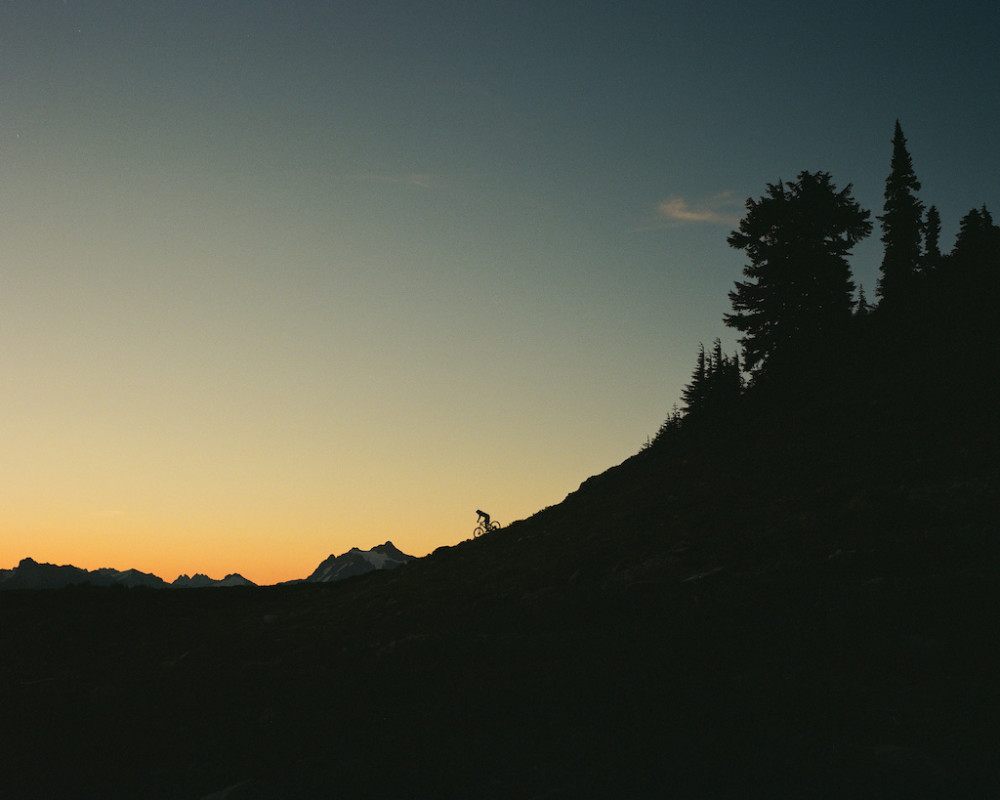 The duo packed their bikes, camera, boxes of 16mm film, light meters and supplies for four days on the Canyon Ridge Trail in the North Cascades near the Canadian border, an hour and a half northeast of Bellingham, Washington. Its accomplished purpose was to create a visual moment of MTB Zen.