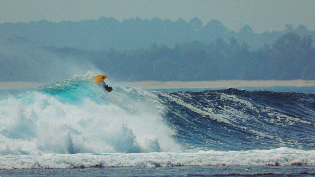 The same typhoon that brought the swell also caused delays to local air travel. “We flew through this storm, and we were landing in random airports where I didn’t even know what country we were in,” Harry said. “But we made it to this little island, and there were perfect waves there.”