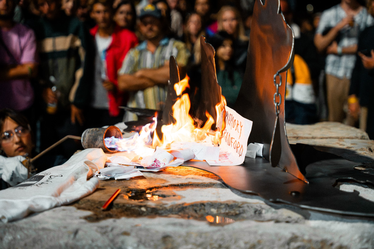 Shortly after sunset on Saturday night, the sculpture made its way to its temporary home by the sea, where all who knew Bradford placed notes and offerings at its base. A moment of prayer took place before Bela torched the notes to ash and sent their messages to our friend in the sky.