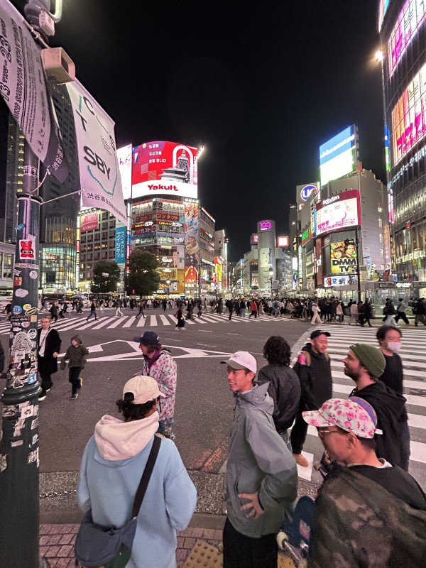 The AriZona Skate Team arrived in Tokyo at night, so after checking in to our hotel we went straight to Shibuya to scope the madness! Leo Heinert, Brandon “Bonestalone” Bonner, Caroline Duerr, Eugenia Ginepro, JJ Colõn, Jefferson “Yiyo” Obando, Blair Alley, Richie Löffler, Rodrigo Cabrejas and our Taiwanese filmer FIVE grabbed dinner with our host for the Sakura Sake Tour, Toshiaki Lida. As expected the scene in Shiubya was lit. We spent quality time filming in the famed intersection and playing with shutter speeds to get that Lost In Translation feel.