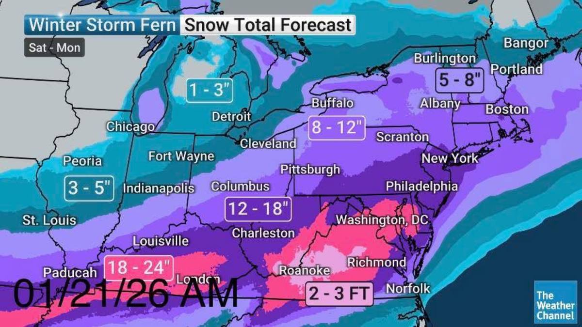 Earlier this week, Blue Mountain, known for being the largest ski resort in the state, shared a forecast from The Weather Channel showing forecasted snowfall totals of 12 to 18 inches from Saturday, January 24, through Monday, January 26, 2026. See below.