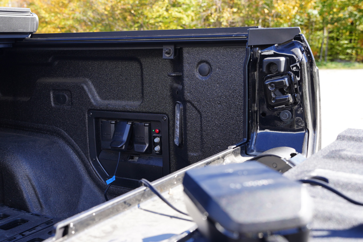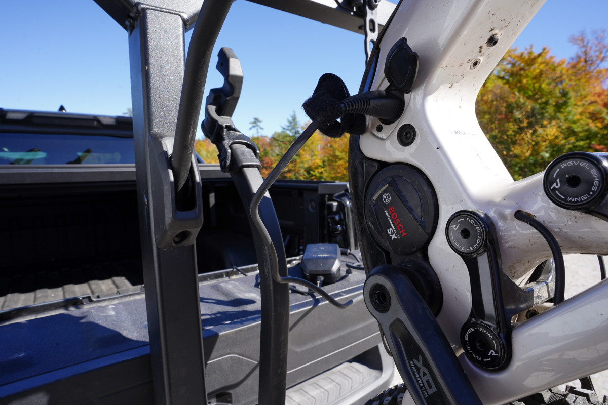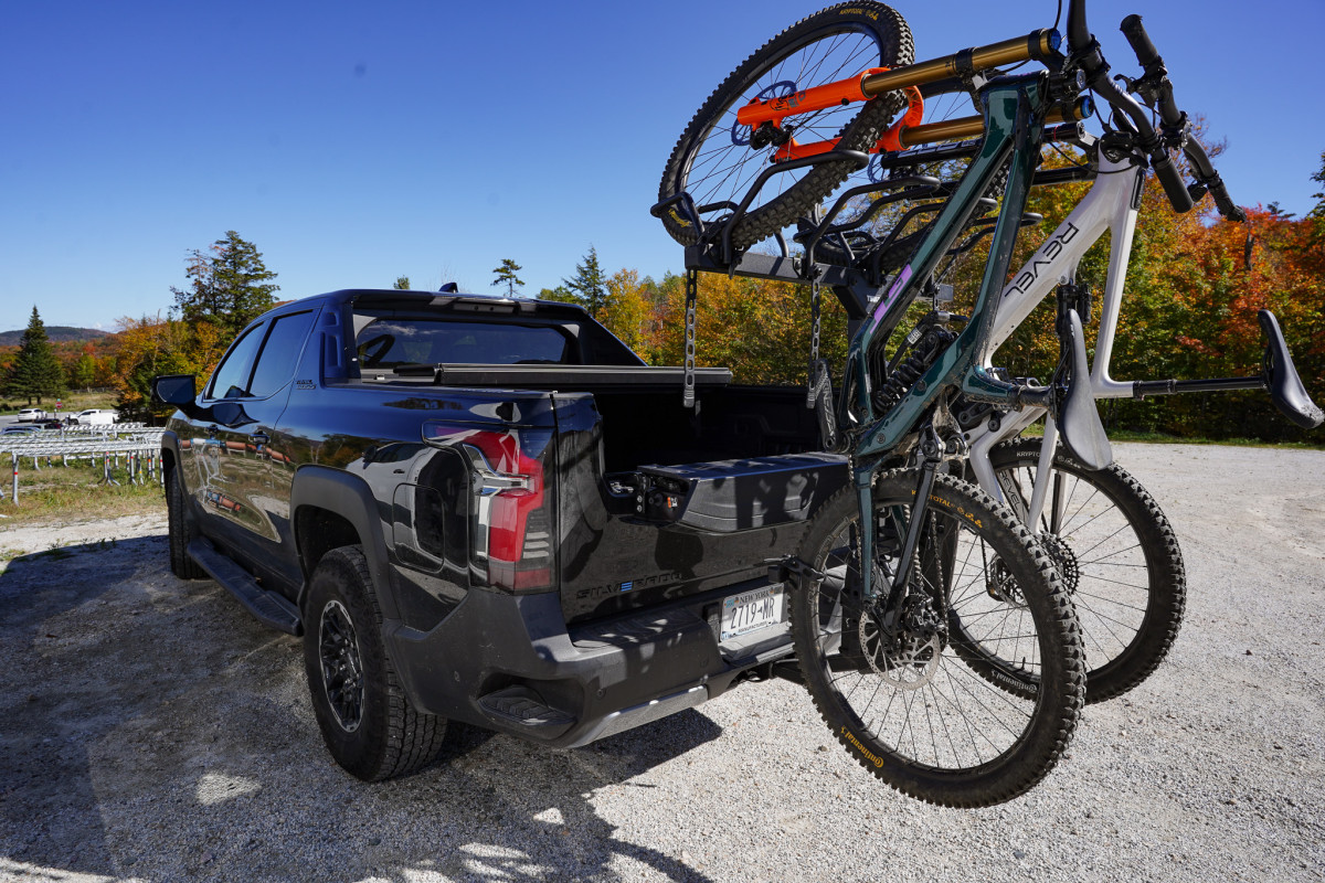 The truck really began to shine once the race was over. In an effort to pack as much test riding in as possible on the Revel ReRun I’ve been reviewing, I made it my mission to hit as many spots as possible. Each day, I'd work a bit in the morning over coffee before taking off from Killington and heading to the next riding zone, bouncing back and forth between trail laps and computer/phone time. I brought my Starlink Mini with me, so I’d put the truck into power bank mode and set up a mini office in the back while the e-bike recharged. The Silverado’s 10.2 kWh battery basically turned any parking lot into my office, workshop, and living room. Something that I'm used to with my much larger and less efficient campervan.