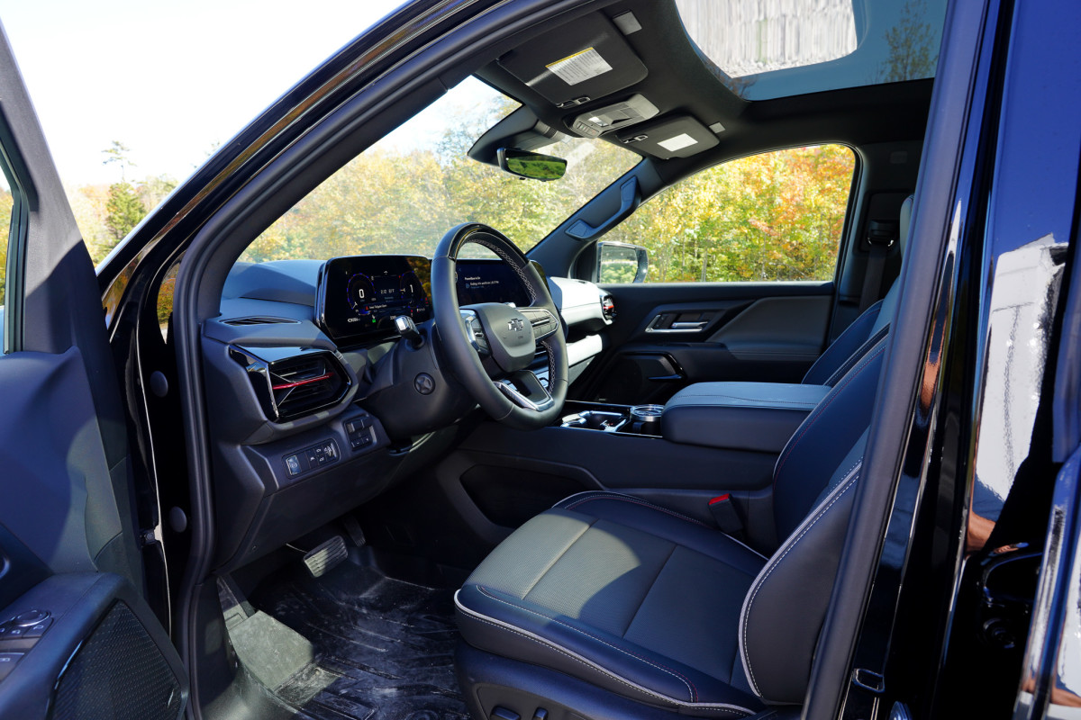 The comfort factor hit me just as hard as the torque. The Trail Boss cabin feels more like a modern workspace than a truck. The seats are thick, supportive leather, and the dash is dominated by a huge, crisp display that keeps the vital info right in front of your face while projecting your speed onto the windshield. With the air-ride suspension, I was getting through chunky access roads easier than ever and arriving at ski resorts without the truck even breaking a sweat. I was genuinely blown away when I purposely hit a pothole that would have given my van a run for its money. It felt like a pavement seam in the Silverado EV.