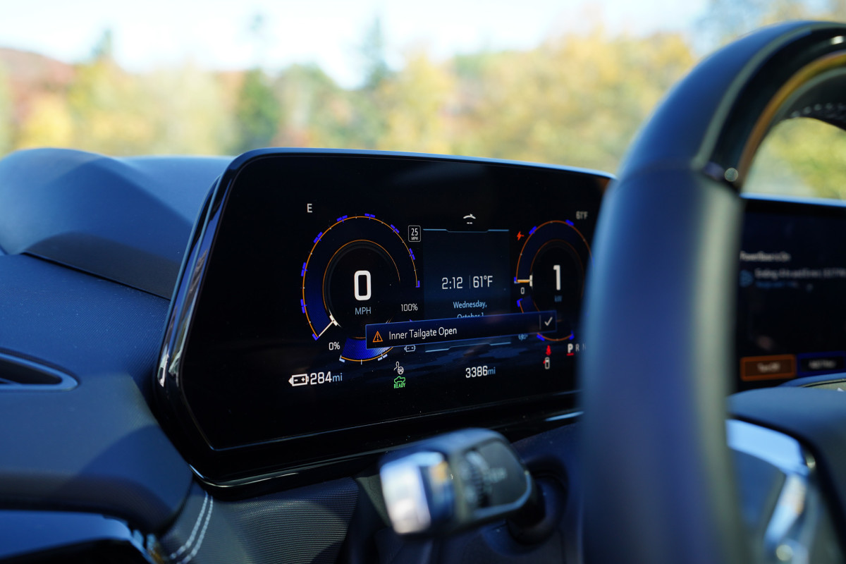 While I had a free charger right outside my hotel, the regenerative braking really did its thing on long descents. Coming down from Killington to Rutland would essentially buy me around 15 miles of range, and coasting downhill while watching that number go up is a pretty good feeling. The Silverado EV didn’t just make it easy to move between riding zones; it made the downtime useful as well. I charged my laptop and ran Starlink while recharging my bike, and I still had plenty of range to get back each day.