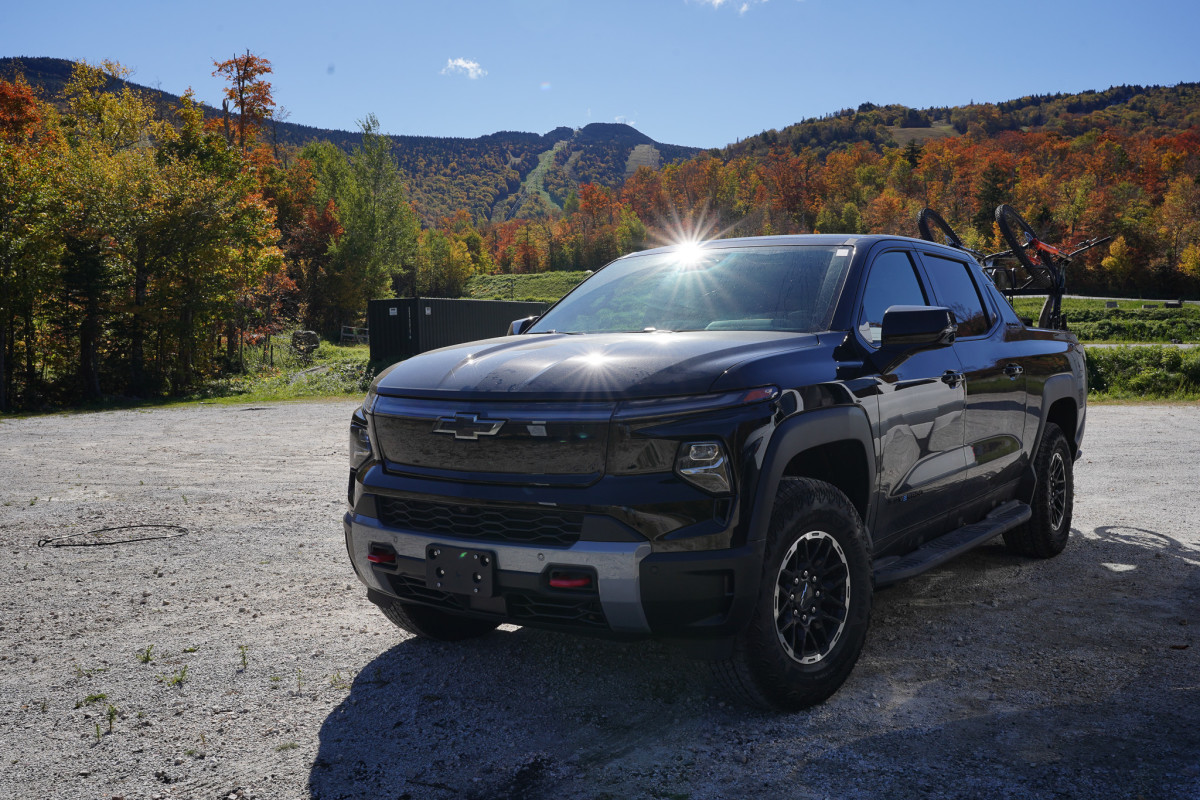 The last time I drove up to Killington, it was in my old Ford E-350 Super Duty with a 5.4L engine, a spacious beast that got about ten miles to the gallon on a good day. I eventually sold it for a high-top campervan that’s now my daily driver. If it’s not already obvious, my priorities have always leaned more toward space and preparedness than fuel economy. I like having room for two to four bikes, all my tools, my photography gear, and plenty of room for spares and other just-in-case gear. So when Chevy suggested I try the Silverado EV Trail Boss for my two-week trip through Vermont and the Adirondacks, I didn’t even bother hiding my skepticism.