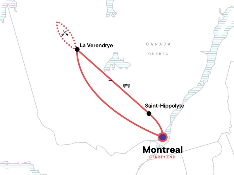 Your Welcome Moment: Welcome Moment - Meet Your CEO and Group. Four day canoe circuit in La Vérendrye Wildlife Reserve. Canoes and Paddles. Self-inflating mattresses and dome tents. Free time in Saint-Hippolyte. All transport between destinations and to/from included activities.
