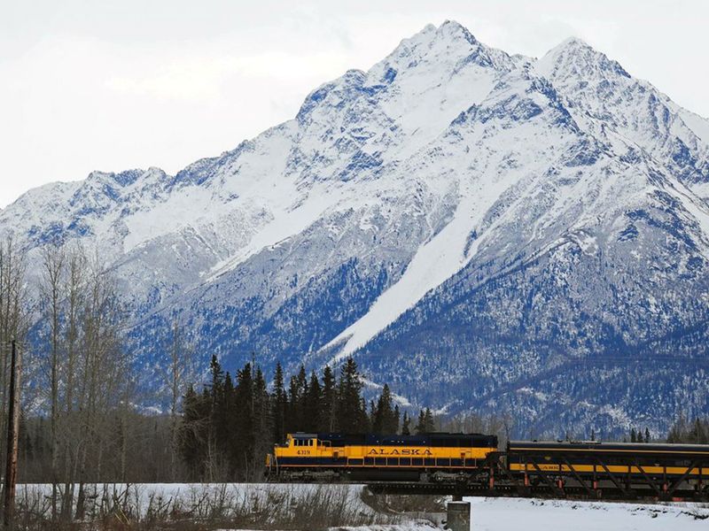 Bask in Alaska’s incredible winter wonderland climate, Walk on the icy blue surface of the Matanuska Glacier, Practice your mushing skills during a dog sled excursion with champions of Alaska’s famous Iditarod, Soak in the warm soothing waters of Chena Hot Springs, Set out on a Northern Lights tracking mission in the Alaskan wilderness, Ride a train through the frozen winter tundra to Fairbanks
