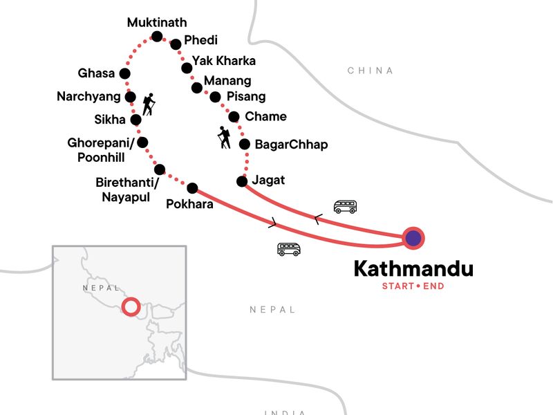 Take in stunning Himalayan views, Trek along the Kaligandaki Gorge; one of the deepest gorges of the world, Traverse Thorong La Pass and view the stunning Annapurna Ranges from the top, Stay the night in the Narchyang community Homestay, View a sunrise from Poon Hill, Meet local yak herders