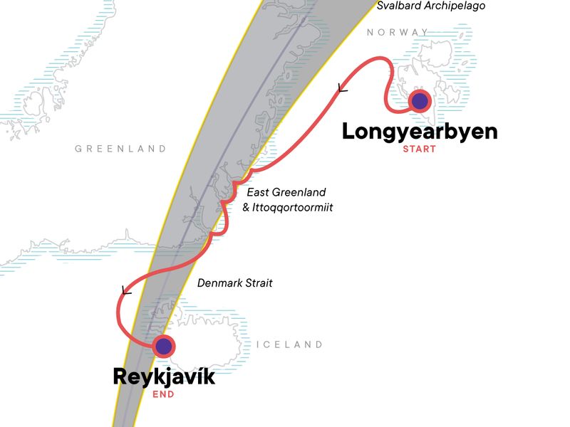 Please note that during the August 3, 2026 departure of this itinerary, travellers will likely experience a partial or full solar eclipse depending on the ship's location while in the Kejser Franz Joseph Fjord.