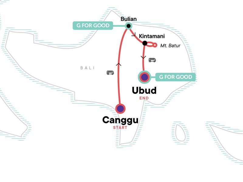 Learn to surf on the iconic beaches of Canggu, Stay with local families in Bulian Village and help make traditional Balinese offerings, Pedal through rice fields and cool off in secret waterfalls, Camp in Kintamani and summit Mount Batur for an unforgettable sunrise, Connect with Bali’s culture over home-cooked meals and village life