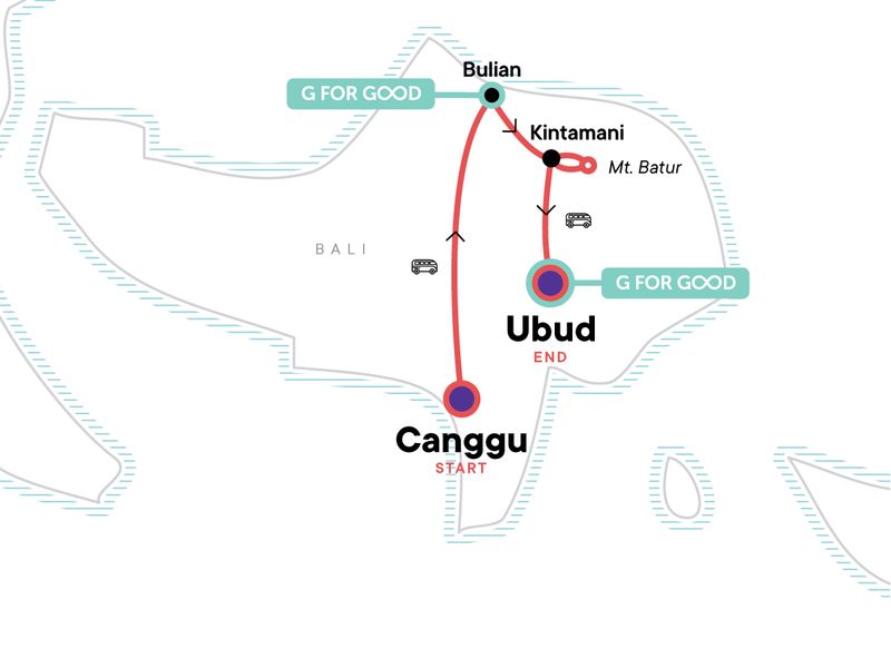 Your Discover Moment: Ubud. 2-hour surf lesson in Canggu. Free time in Canggu. Ulun Danu Temple. Bulian Village Tour with local guide. Free time to explore Bali's rural side in Bulian. Camping in Kintamani. Mt Batur sunrise hike + hot spring soaks. Free time in legendary Ubud. All transport between destinations and to/from included activities.