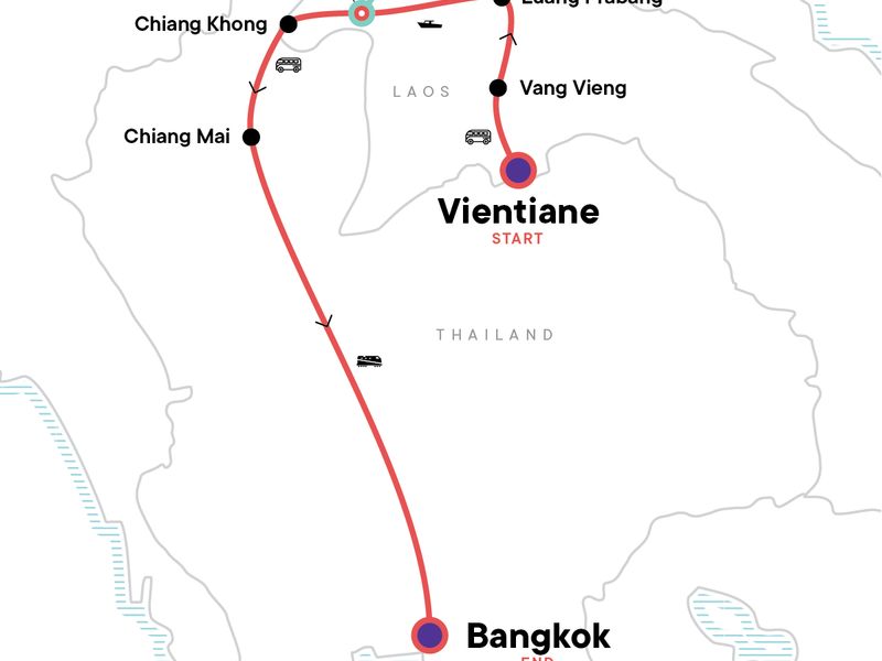 Your Big Night Out Moment: Bangkok. Guided hike in Vang Vieng. Slow boat up the Mekong. Orientation walk, Wat Phousi sunset hike, Kuang Si Waterfalls excursion and street food crawl in Luang Prabang. All transport between destinations and to/from included activities.