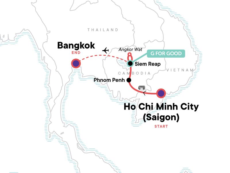 Explore exciting and fast-paced Ho Chi Minh City, discover the magnificence of Angkor Wat, savour an authentic Khmer meal at a social enterprise project
