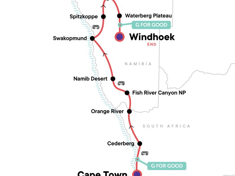 Soak up cosmopolitan Cape Town, Take in the breathtaking view of the immense Fish River Canyon, Tackle the world's largest sand dunes, Get your adrenaline going with adventurous activities in Swakopmund, Snap shots of the "big five" in Etosha National Park