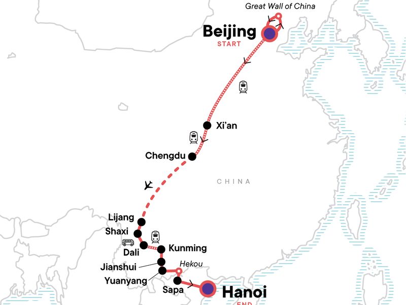 From Beijing's iconic heart to Hanoi’s vibrant streets, this 21-day journey takes you through the best of China and Vietnam in one epic adventure. You’ll tick off bucket-list wonders like the Great Wall and Terracotta Warriors, but the magic lies in discovering southern China’s hidden gems — Shaxi, Dali, and Kunming — where culture, nature, and local flavours reign supreme. Cross into Vietnam and dive into the colourful world of Sapa and Hanoi, just enough to get you hooked on the country's rich culture and cuisine. This isn’t just a trip — it’s a road trip filled with unforgettable moments that’ll leave you craving more.