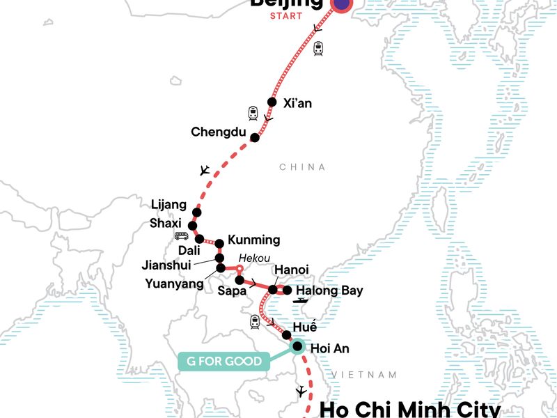 If you've ever dreamed of escaping for a month to explore two of Asia's most captivating countries, this is your sign to pack your bags. Over 28 epic days, travel from the buzz of Beijing to the vibrant streets of Ho Chi Minh City. Walk the legendary Great Wall and stand in awe of the Terracotta Warriors before venturing off the beaten path in southern China. Cross into Vietnam, where you’ll trek the stunning rice terraces of Sapa, cruise through the emerald waters of Halong Bay, and soak in the charm of Hue and Hoi An. This one-of-a-kind adventure will leave you with a heart full of memories and stories that’ll last a lifetime.