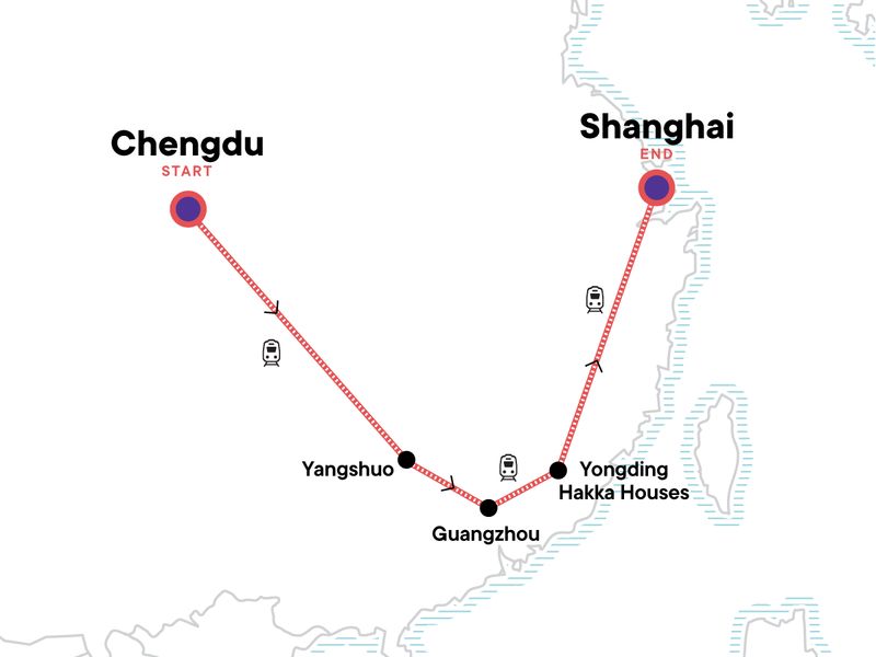 When people think of China, they picture massive, lit-up cities with delicious food. And while that's spot on, there's a whole other side to China we can't wait to show you. Kick things off in Chengdu, one of those huge, bright cities we mentioned. Then, venture into the less-traveled parts of China, like the stunning mountains of Yangshuo and the historic Hakka Houses in Yongding. Wrap it all up in one of the most unique cities in all of China. Now, that’s an epic adventure waiting to happen.
