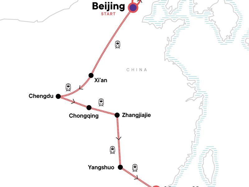 Your Discover Moment: Yangshuo. Tiananmen Square tour. Jingshan Park visit. Orientation walk in Beijing. Included visit to the Great Wall of China. Visit the Terracotta Warriors. Tour the Xi'An Muslim Quarter tour. Orientation walk in Xi'an. Tianfu Square visit. Orientation walk in Chengdu. Visit to Ciqikou Old Town. Hongyadong Visit at night. Chongqing walking tour. Two-day entry permit to Zhangjiajie National Forest Park. Free time in Zhangjiajie. Orientation walk in Zhangjiajie. Yangshuo City & Countryside bike tour. Orientation walk in Yangshuo. Free time in Yangshuo.