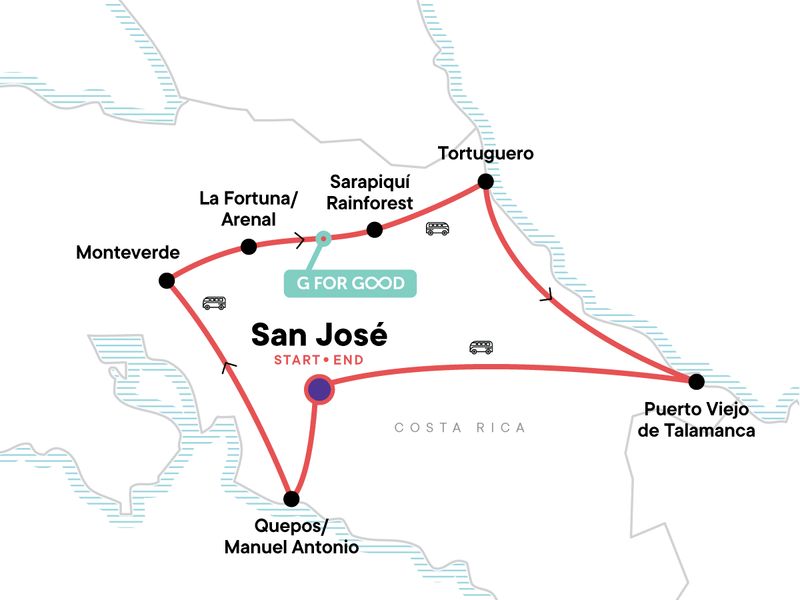 Spot wildlife while cruising through the canals of Tortuguero, Hike through the cloud forest, Enjoy the gorgeous beaches of the Pacific and Caribbean coasts, Savour a local lunch at a G Adventures-supported coffee plantation