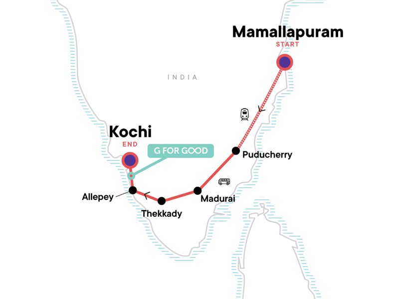 Southern India is a kaleidoscope of colour, culture, and calm — and this adventures takes you straight into its heart. Wander the sculpted temples of Mamallapuram, explore the coastal charm of Puducherry's tree-lined streets, and lose yourself in Madurai’s vibrant Meenakshi complex. Between temple visits, you’ll taste spices where they’re grown, float through Kerala’s famous backwaters, and discover daily life in bustling markets and quiet villages. It’s history, nature, and culture rolled into one unforgettable adventure.