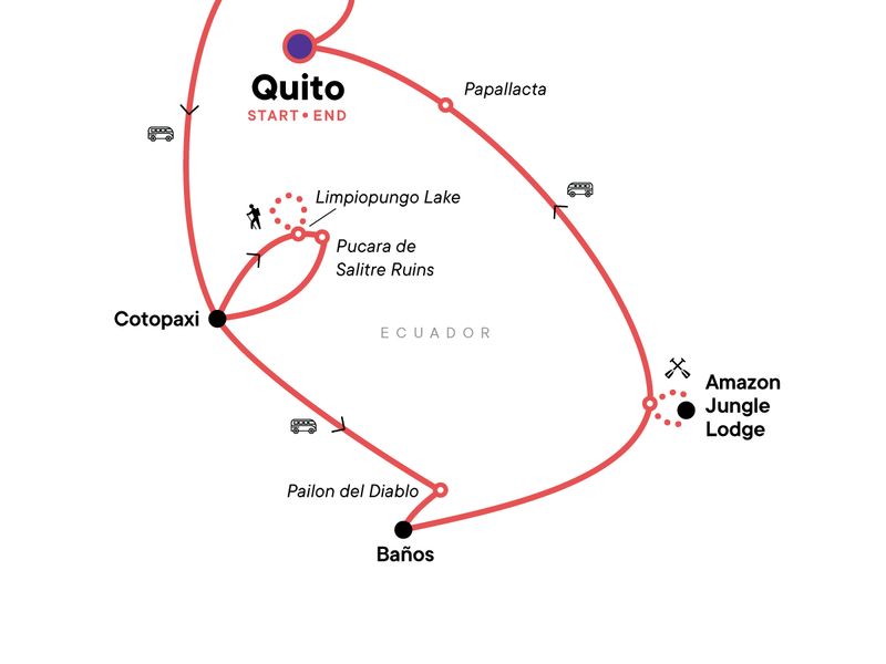 Sip a traditional warm canelazo drink on arrival to Cotopaxi, Hike in Cotopaxi National Park featuring stunning views and breathtaking altitudes, Soak in the views and see thundering waterfalls in the lush landscapes of Baños, Head out on nature walks and learn about traditional life in the Amazon Jungle