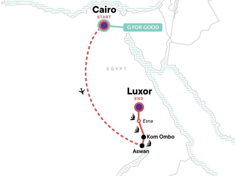 Your Local Living Moment: Local Family Home Hosted Lunch, Luxor. Complimentary arrival transfer. Welcome dinner. Guided visit of the Pyramids of Giza and Sphinx. Guided visit to the temples of Karnak and Luxor. 2-night traditional dahabiya sailing excursion. Guided visit of the Valley of the Kings and Temple of Queen Hatshepsut. Guided visit of the temples of Edfu and Kom Ombo. Guided visit of Philea Temple in Aswan. Abu Simbel tour. Visit the Egyptian Museum. Farewell Dinner. Internal flights and all transport between destinations and to/from included activities