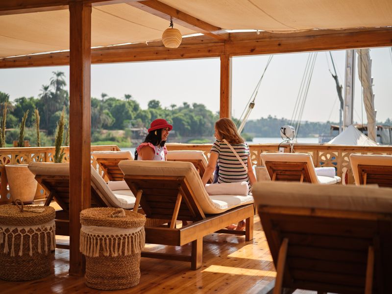 Sail the Nile in style aboard a traditional dahabiya with personalized service and stunning river views, Walk in the footsteps of pharaohs at the Pyramids of Giza and the Valley of the Kings, Connect over a home-cooked meal with a local family and learn about life along the Nile, Marvel at ancient treasures and golden masks inside Cairo’s Egyptian Museum, Witness hieroglyphs up close inside grand temples and tombs with expert local guides, Soak up the peaceful beauty of the Egyptian countryside between iconic landmarks