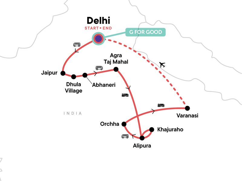 Arrive at any time. Arrival transfer is included through the G Adventures-supported Women With Wheels project. Arriving early with a free day in Delhi? Opt to add the "Half Day Culinary Tour of Delhi" extra to your tour.