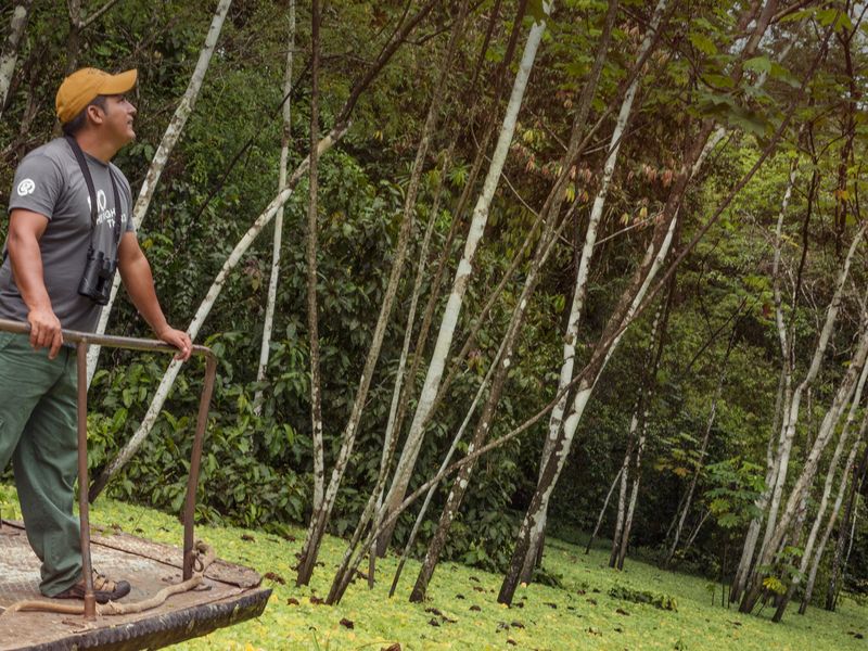 Arrive at the Puerto Maldonado airport and meet the naturalist guide to journey to the jungle lodge, spotting wildlife en route. Before dinner, head out for a night walk around the lodge. After a brief stop in town to store large luggage, drive to the pier and travel by covered motorized boat to the jungle lodge. En route, spot bird species typical of the river and forest edge—the Tambopata Rainforest holds the world record for the most bird sightings in one area. Arrive at the lodge and enjoy a welcome drink and orientation. Head out for a night walk around the lodge grounds before dinner. Local community members make up the majority of lodge staff, including multilingual naturalist guides. Take the opportunity to learn about the area’s rich flora and fauna and the locals' extensive use of medicinal plants and other natural forest resources through traditional techniques for building, fishing, and hunting.