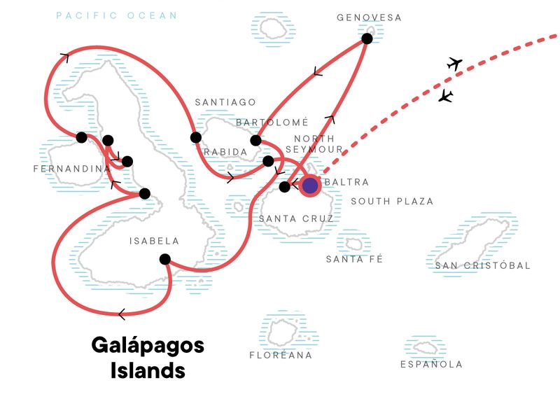 Arrival transfer. 7 nts in the Galápagos Islands aboard the Yolita. Flights to and from the Galápagos Islands. Certified Galápagos National Park Service guide. All landings, excursions, and transportation. Snorkelling equipment and wetsuits.