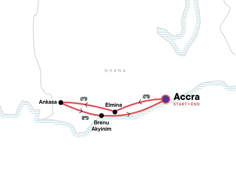 Arrival transfer. Cape Coast Castle Visit. Traditional Batik making workshop. Visit to Kakum National Park. Stingless bees project tour. Baobab Foundation Restaurant Lunch. Djembe drum performance and dance lesson. Dugout canoe ride to Nzulezu Stilt Village. Biking or hiking in the Ankasa Reserve. Ankasa Village and Community Excursion. Fishing town of Elmina and Castle of Saint George Visit. Kwame Nkrumah Memorial Park Visit. Fantasy Coffins. Jamestown Walking Tour. Artist Alliance Gallery and Makola Market Visits. Black Star Gate and Independence Square Tour. All transport between destinations and to/from included activities.
