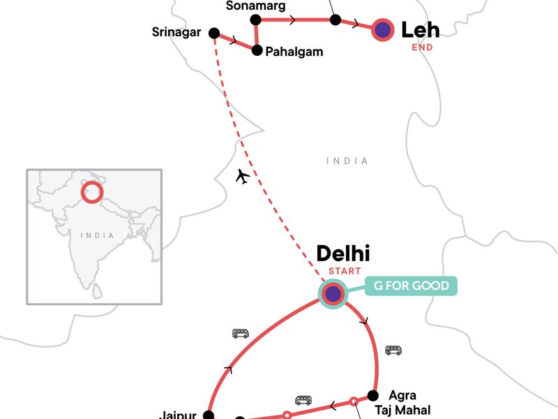 Arrive at any time. Arrival transfer is included through the G Adventures-supported Women With Wheels project. Arriving early with a free day in Delhi? Opt to add the "Half Day Culinary Tour of Delhi" extra to your tour.