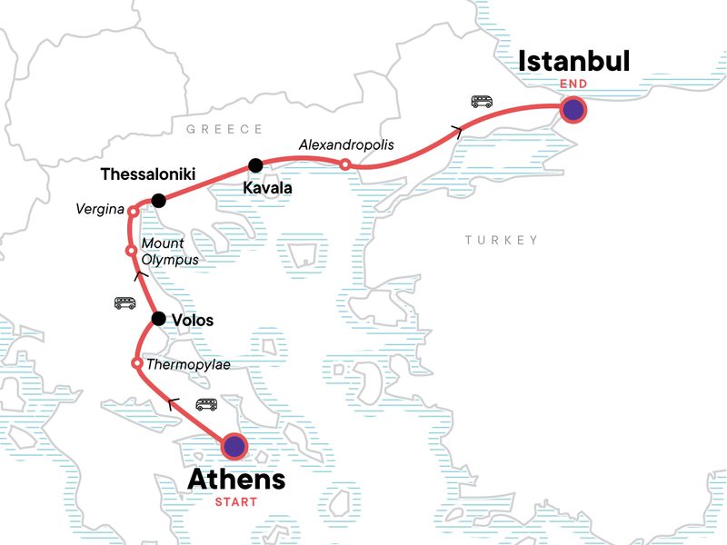History, mythology, cobblestone streets, golden beaches, and the legendary Mt. Olympus — what more could you ask for? Journey from west to east on this epic seven-day adventure from Athens to Istanbul. Walk in the footsteps of warriors at the Thermopylae battlefield, the inspiration for the movie 300, and dive into the myths and legends that make Greece so captivating over a spread of delicious local meze. Wander through the rugged beauty of Mt. Olympus National Park, standing in the shadow of the gods, before crossing into Turkey and arriving in Istanbul — a city where East meets West in a vibrant swirl of culture, history, and incredible food. One unforgettable week, two incredible countries, and memories to last a lifetime.