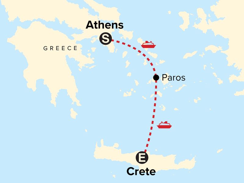 Delve into Greek history with visits to the Acropolis Museum and the Agora of Athens, Hop aboard a ferry to Paros and step foot inside the church of Panagia Ekatontapiliani—one of the most important monument in all of Greece, Learn about the traditional ingredients used in Greek cuisine with an authentic cooking class, Embark on a history-packed scavenger hunt in Heraklion City exploring iconic Greek monuments and discovering the gods of Olympus.