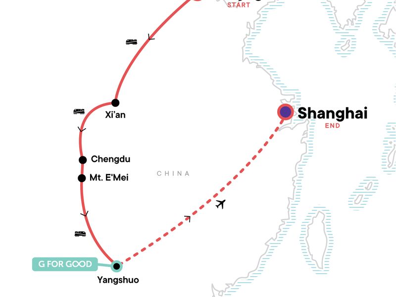 Immerse yourself in China's vast and beautiful diversity on this 15-day tour of its cultural and natural highlights. Climb the Great Wall and stare down the Terracotta Warriors, then head south into landscapes brimming with history. Rest your gaze on the giant Buddha of Leshan and explore ancient mountainside monasteries at Emei Shan before stepping out to experience the vibrant rural life and stunning scenery of Yangshuo. From Beijing to Shanghai and everything in between, discover all the highlights and still have time to explore on your own and with your CEO.