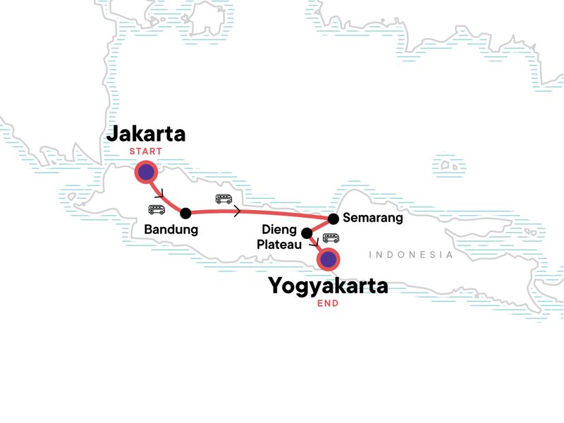 Dive into the heart of Java on this eight-day adventure packed with culture, cuisine, and jaw-dropping landscapes. Stroll through bustling Jakarta, savour mouthwatering Sundanese dishes, and hike to steaming volcanic craters that feel like another planet. Explore a fascinating mix of cultures and religions as you visit Chinese-Muslim temples, ancient churches, and colonial-era marvels. Then, gear up for an epic trek across the Dieng Plateau — home to over 20 craters and towering stratovolcanoes. Bring your curiosity, a hearty appetite, and a solid pair of walking shoes — Java is ready to blow you away.