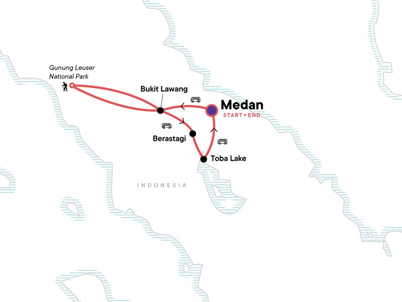 Orangutan Trekking in Gunung Leuser National Park, Visit Lake Toba the world's largest volcanic lake, Explore Samosir Island, Enjoy a guided tour of local indigenous Batak Village, Adventure through Sumatra's biggest city Medan