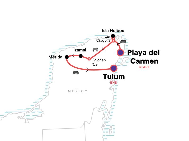 Your Discover Moment: Mérida. Orientation walk of Isla Holbox, Izamal. Chichén Itzá guided tour. Swim and lunch at cenotes en route to Merida. Guided tour of Tulum Ruins. Free time in Isla Holbox, Merida, and Tulum. All transport between destinations and to/from included activities.