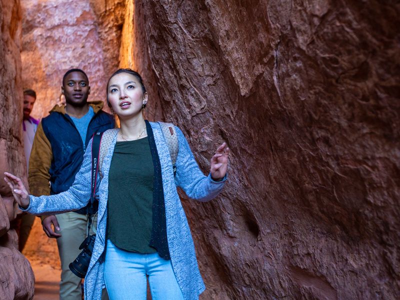 Your Welcome Moment: Welcome Moment - Meet Your CEO and Group. Petroglyphs at Capitol Reef National Park. Stargazing in a Dark Sky Park. Newspaper Rock State Historical Monument Visit. The Needles in Canyonlands. A portion of the Joint Trail and Chesler Park Hike. Queen's Garden and Navajo Loop Hike. Scout Lookout Hike. The Narrows Hike. Entrance fees to all national parks and monuments with hiking and walking excursions. Self-inflating mattresses and dome tents. All transport between destinations and to/from included activities.