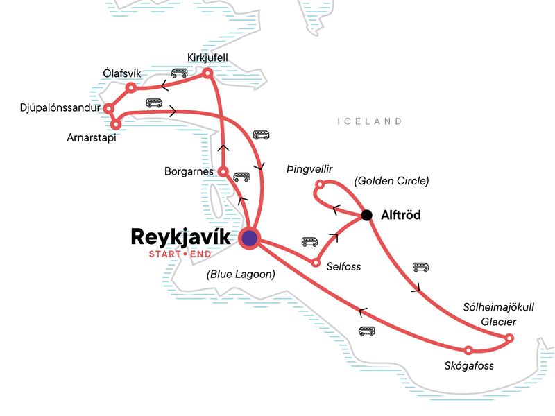 2. If you wish to visit the Blue Lagoon, please know that this activity must be done before or after your tour. As this activity is very popular, we recommend booking it in advance.