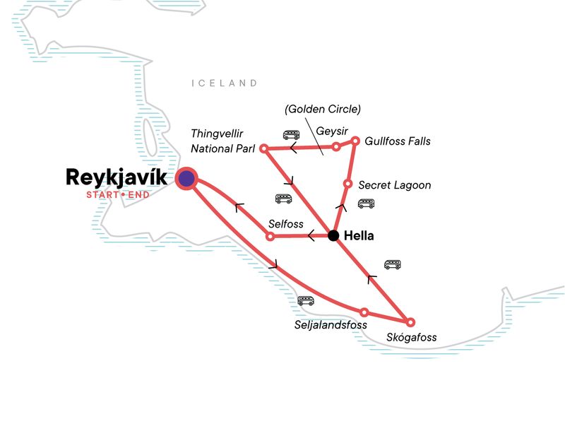 Please go to the Flybus booth inside the arrival hall before exiting the airport, and advise staff about your name and that you're doing a G Adventures trip. They will then hand you a ticket for the bus that brings you to your start hotel. The bus shuttles leave regularly (approx. every 30 minutes) from the airport to Reykjavik and you can take any of them with this voucher.
