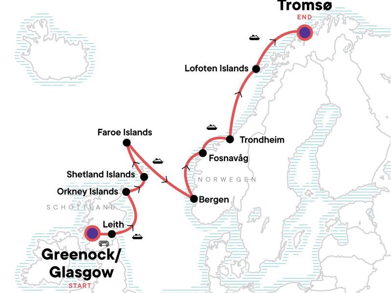 Set sail for a 16-day adventure through the wild and windswept corners of the North Atlantic — from the mystical Scottish Isles to the dramatic Faroe Islands and along the stunning coast of the Norwegian Sea. Follow the ancient paths of the Vikings, get up close to glaciers and fjords, and discover landscapes so surreal they feel otherworldly. Along the way, you’ll explore UNESCO World Heritage Sites, spot wildlife on remote shores, and uncover the deep history woven into every rugged cliff and fishing village. Starting in storied Glasgow and ending in Arctic Tromsø, this is the kind of journey that stays with you long after you’re home.
