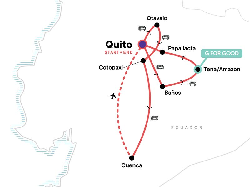Wander Quito and colonial cities on your own during free time, Get adventurous in Baños, Feel like a local and stay right in the Amazon jungle, Soak in an Andean hot spring, shop at the Otavalo Market
