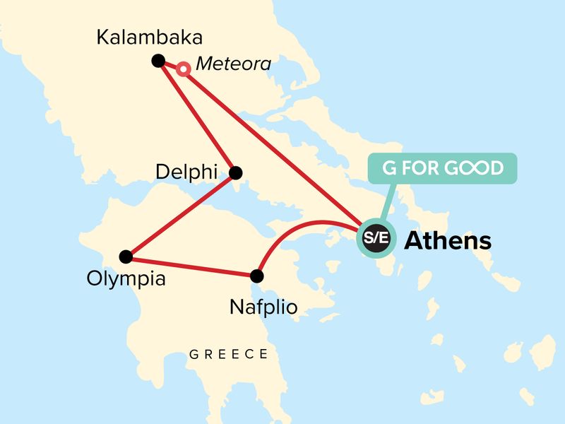 Your Welcome Moment: Welcome Moment - Meet Your Expedition Leader and Group. Thermopylae visit at the Leonidas Statue. Meteora tour. Delphi guided tour. Olympia orientation walk. Olympia guided tour. Nafplio guided tour. Mycenae guided tour. Epidaurus visit. Corinth Canal visit. All transport between destinations and to/from included activities
