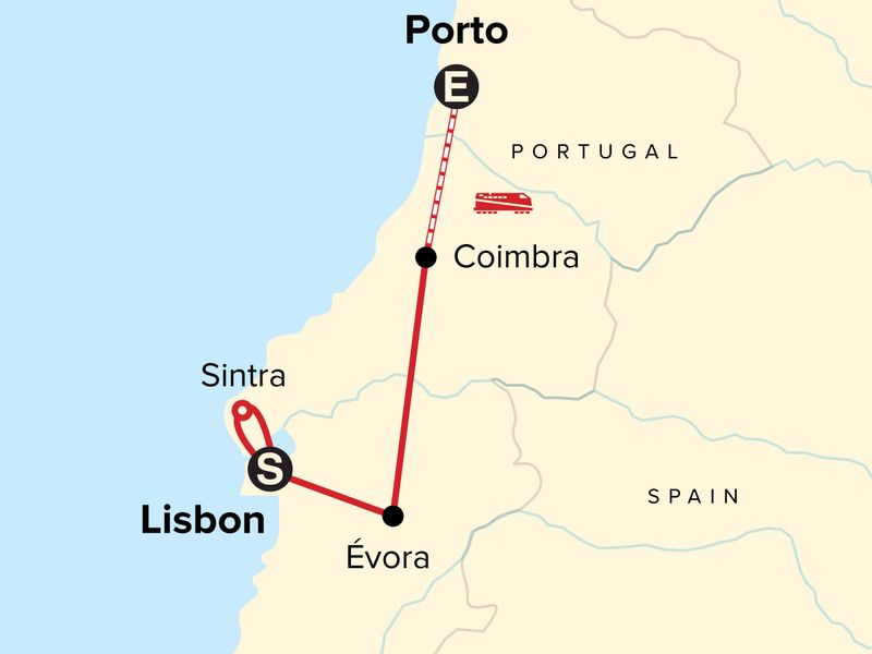Your Hands-On Moment: Port Wine Cellar Visit, Porto. Lisbon orientation walk. Guided tour of Palace of Pena in Sintra. Chapel of Bones visit in Evora. Diana's Temple visit in Evora. Guided tour of Coimbra University. Porto orientation walk. Douro River boat cruise. Transport to/from all included activities and between all destinations