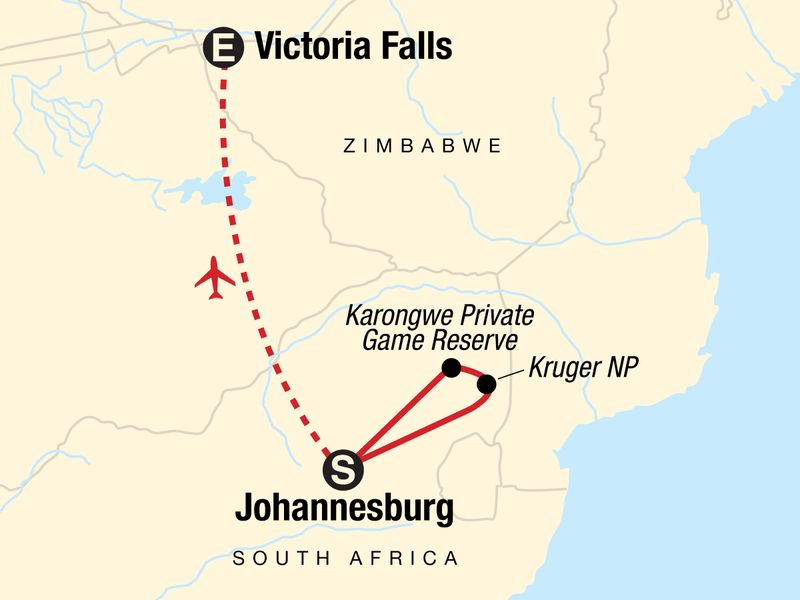 Your Foodie Moment: Boma Braai, Karongwe Private Game Reserve. Arrival transfer. Panorama Route scenic drive. Kruger National Park and private nature reserve wildlife safari drives in open vehicles. Tour of Victoria Falls. Internal flights. All transport between destinations and to/from included activities