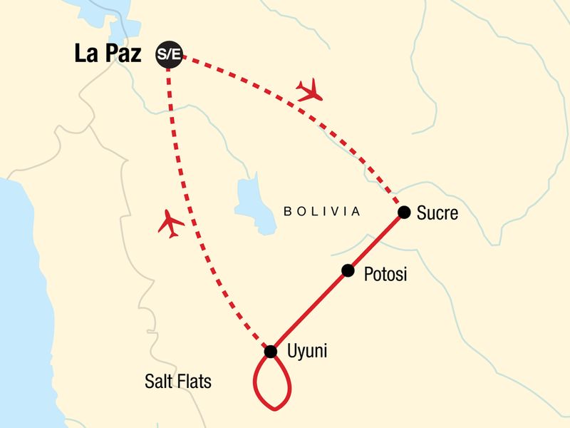 Your Journeys Highlight Moment: La Paz Culinary Experience, La Paz. Arrival transfer. La Paz city tour. Sucre orientation walk. Excursions to the Salar de Uyuni. Internal flights. All transport between destinations and to/from included activities