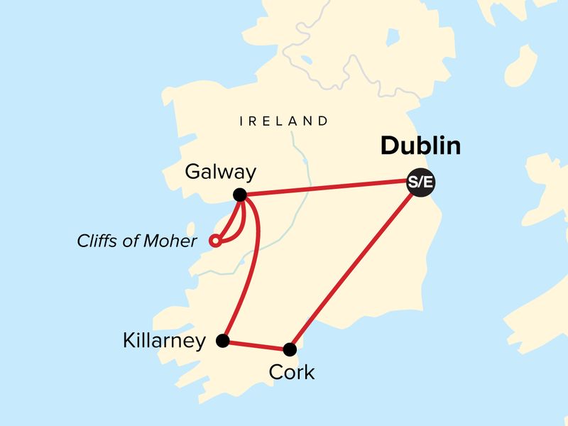 Your Discover Moment: Dublin. Visit to Trinity College Dublin. Blarney Castle visit. Ring of Kerry guided day excursion. Galway City walking tour. Cliffs of Moher cruise and guided tour. Cork orientation walk. All transport between destinations and to/from included activities